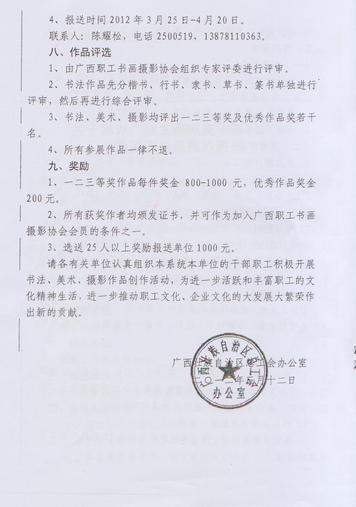 關(guān)于轉(zhuǎn)發(fā)《關(guān)于舉辦廣西工會系統(tǒng)干部職工書畫攝影作品展的通知》