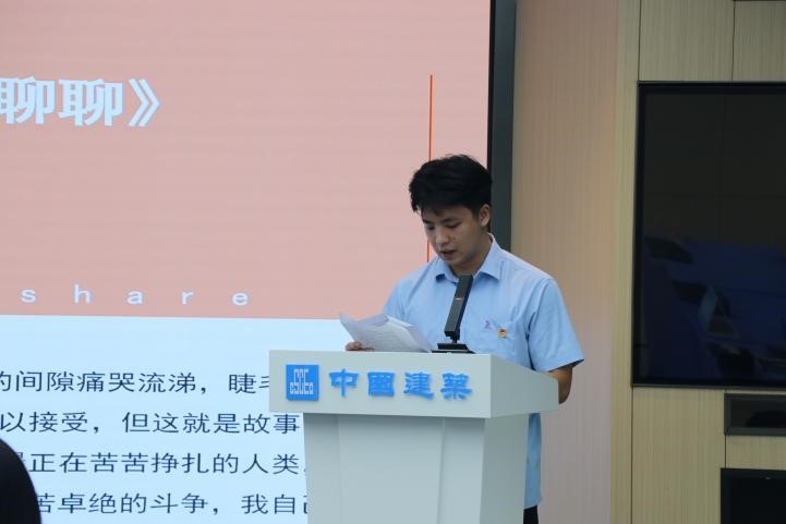 活動首先由承辦單位中建八局南方公司基礎(chǔ)設(shè)施分公司代表廖思程同志為活動致辭。他提到,讀書不是為了滿足“書中自有黃金屋,書中自有顏如玉”的功利心,而是通過實現(xiàn)自身內(nèi)在的淡定和從容,達到自我和外在的容納與協(xié)調(diào),從而遇見更好的自己。