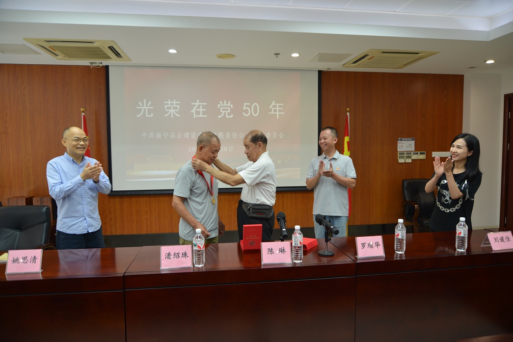 最后,南寧市住建行業(yè)黨委陳琳副書(shū)記發(fā)言致詞,他指出:“光榮在黨50年”紀(jì)念章是黨員用半生奉獻(xiàn)換來(lái)的榮譽(yù),這份榮譽(yù)是廣大黨員在學(xué)習(xí)黨史過(guò)程中的鮮活范例,榮譽(yù)之光更是照亮我們黨前行之路的一盞“明燈”。他希望潘紹珠保重身體,繼續(xù)發(fā)揮余熱,永葆政治本色;期望廣大年輕黨員以老黨員為榜樣,永遠(yuǎn)聽(tīng)黨話、感恩黨,跟黨走,賡續(xù)光榮傳統(tǒng),傳承精神譜系,砥礪奮進(jìn)、接棒前行,奮力在全面建設(shè)社會(huì)主義現(xiàn)代化國(guó)家新征程上譜寫(xiě)新篇章!